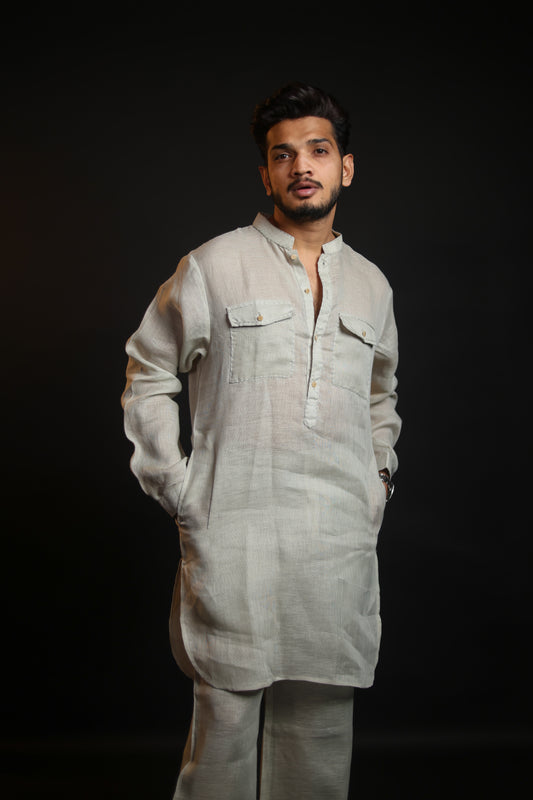 SAGE GREEN 100% LINEN KURTA WITH FLARED PANTS