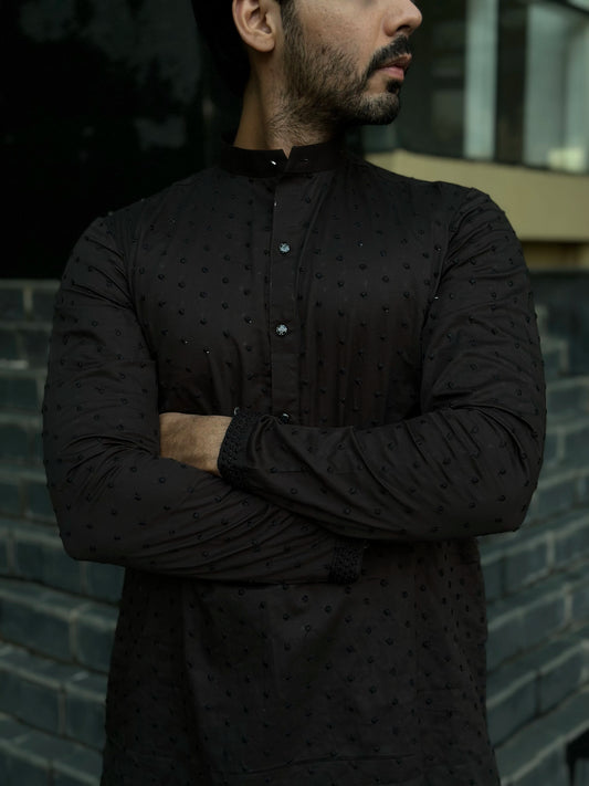 BLACK DESIGNED EMBROIDERED KURTA