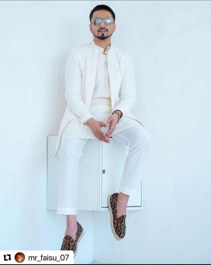 Mr. Faisu spotted in Qala designer cut away long jacket with detailed Kurta inside, matched with Polo pant on the occasion of EID, Must have for all occasions