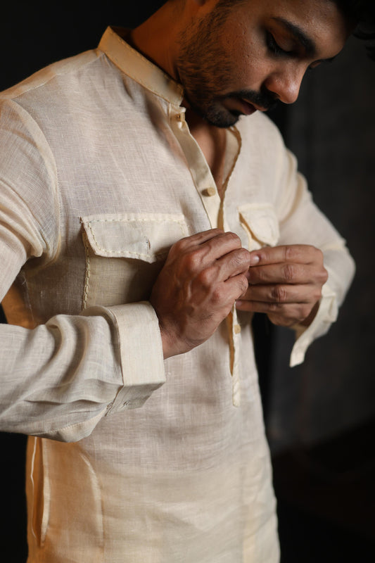 Sold out100% LINEN KURTA WITH FLARED PANTS