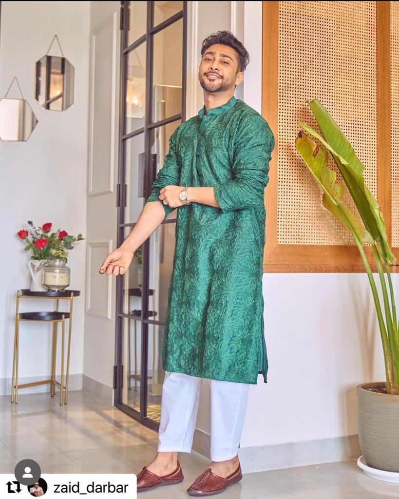 Shop this ProductZaid Darbar seen wearing Qala designer Kurta brimming with embroidery details all over